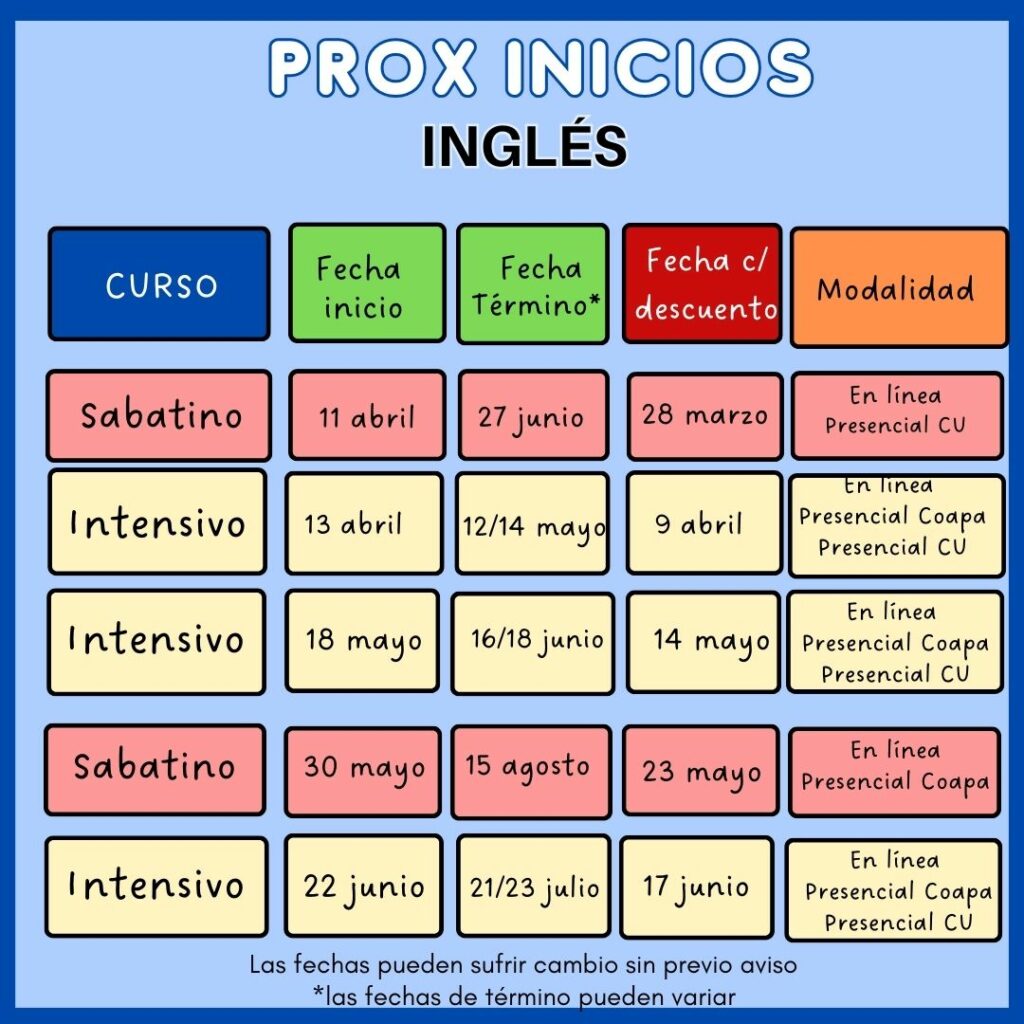 Las clases en línea se llevan a cabo en plataforma Google Meet con profesor en tiempo real. La ventaja es que si vas a faltar, avisas al profesor y la clase queda grabada para que puedas revisarla.